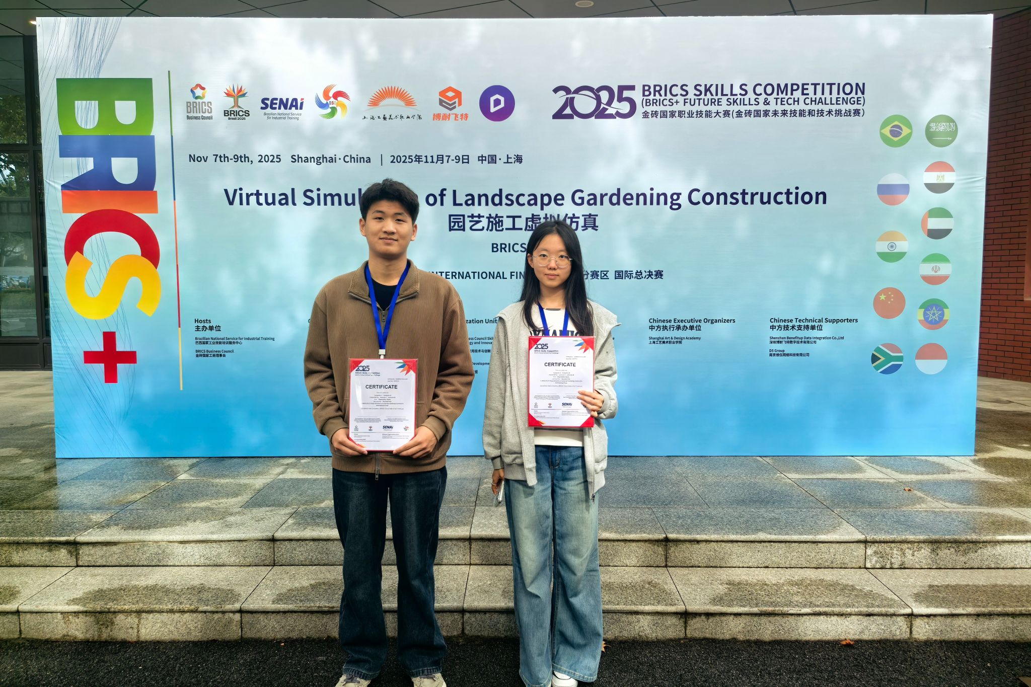 11.13 / 2025 我院获得2025金砖国家职业技能大赛园艺施工虚拟仿真赛项一等奖