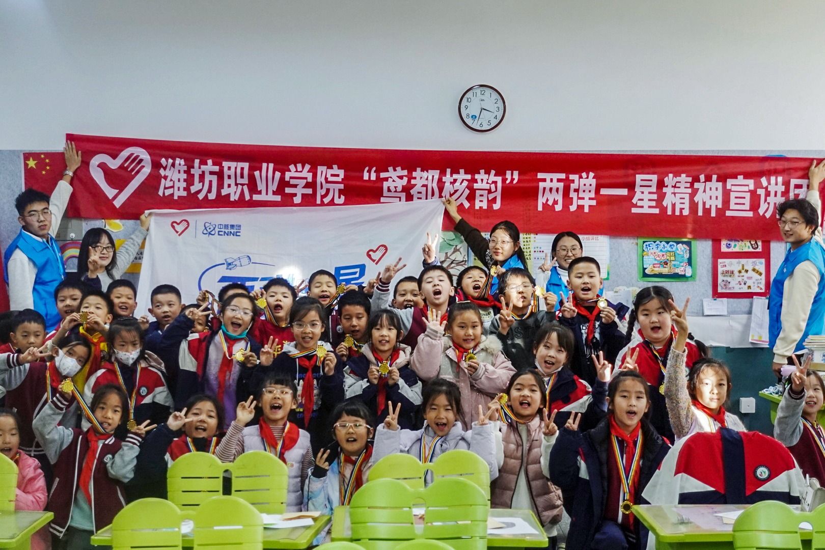 红色精神润童心 趣味互动播火种——潍坊职业学院“鸢都核韵”宣讲团走进小学开展“两弹一星”主题宣讲