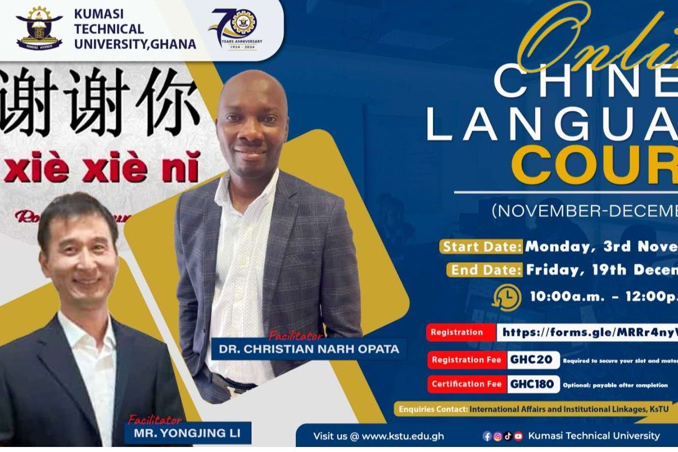 为助力学院加纳网络中文课堂发展,我院教师李永进以中文志愿者身份于本学期公派赴加纳任教。12月19日,面向加纳库马西技术大学教师的定制化中文培训顺利收官。据悉,该网络中文课堂已连续开办三期,累计培训学员500余人,前期主要采用“远程直播+辅导”模式授课,此次派遣教师标志项目从远程支持正式迈入在地化深入发展阶段。李永进老师精准对接培训需求,定制“日常交际+文化认知+教学应用”三维课程体系,融入中国传统节日、中式礼仪等文化元素。...更多 -
