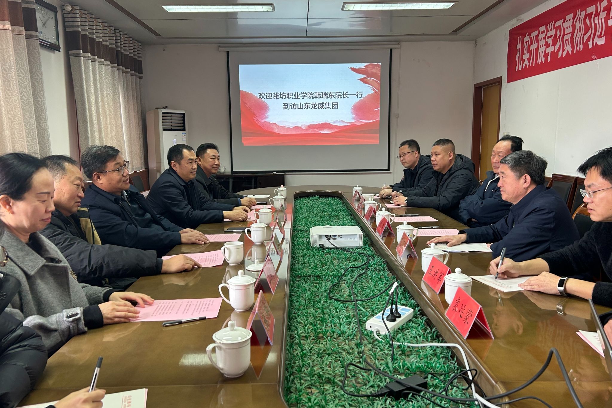 为深化产教融合、校企合作,为学生实习就业搭建优质平台,12月31日,学院院长韩瑞东带队赴滨海区合作企业开展访企拓岗调研活动。党委委员、副院长付一明,经营管理学院党政负责人等参加调研。滨海区中央城区开发服务中心党委书记刘岩陪同调研。在山东潍坊龙威实业有限公司,校企双方举行座谈交流。公司董事长袁萌龙对学院一行表示欢迎,详细介绍了企业发展现状与人才需求,并期望通过“订单式”“定制式”培养模式及实习实训基地建设,...更多 -