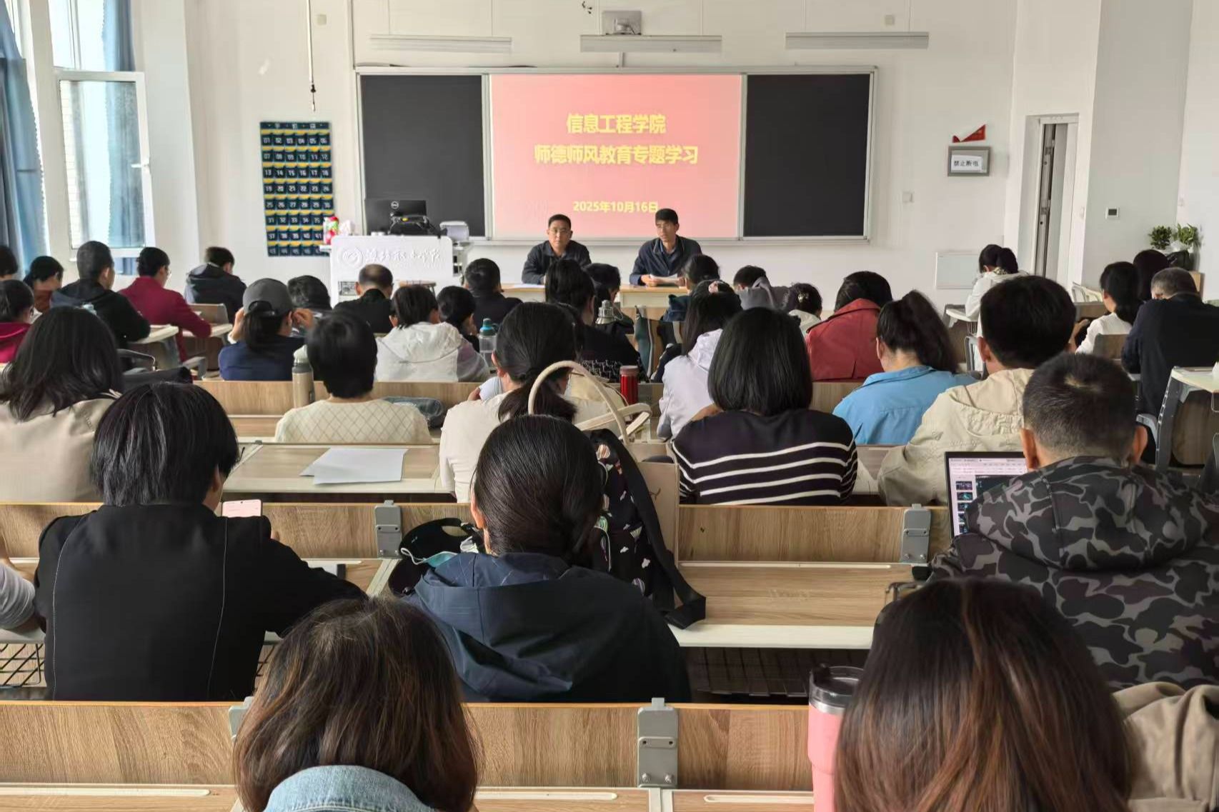 为深入贯彻落实学院党委《2025年师德建设教育月活动实施方案》精神,大力弘扬教育家精神,建设高素质专业化教师队伍,9月1日至10月16日,信息工程学院精心组织、周密部署,开展了一系列师德师风建设活动,取得了显著成效。活动期间,信息工程学院组织全体教师集体签署了《潍坊职业学院师德承诺书》,引导教师牢记育人初心,恪守职业准则,自觉践行“四个相统一”,争做“四有”好老师;结合典型案例开展了师德警示教育和“以案说规”...更多 -