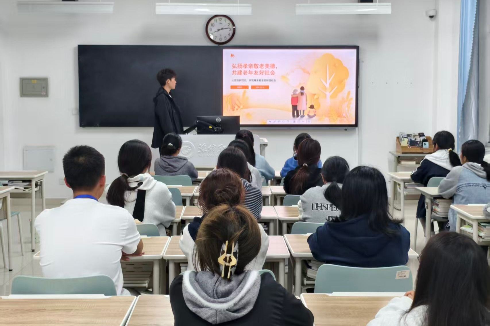 经营管理学院团总支开展“弘扬孝亲敬老美德,共建老年友好社会”主题团课