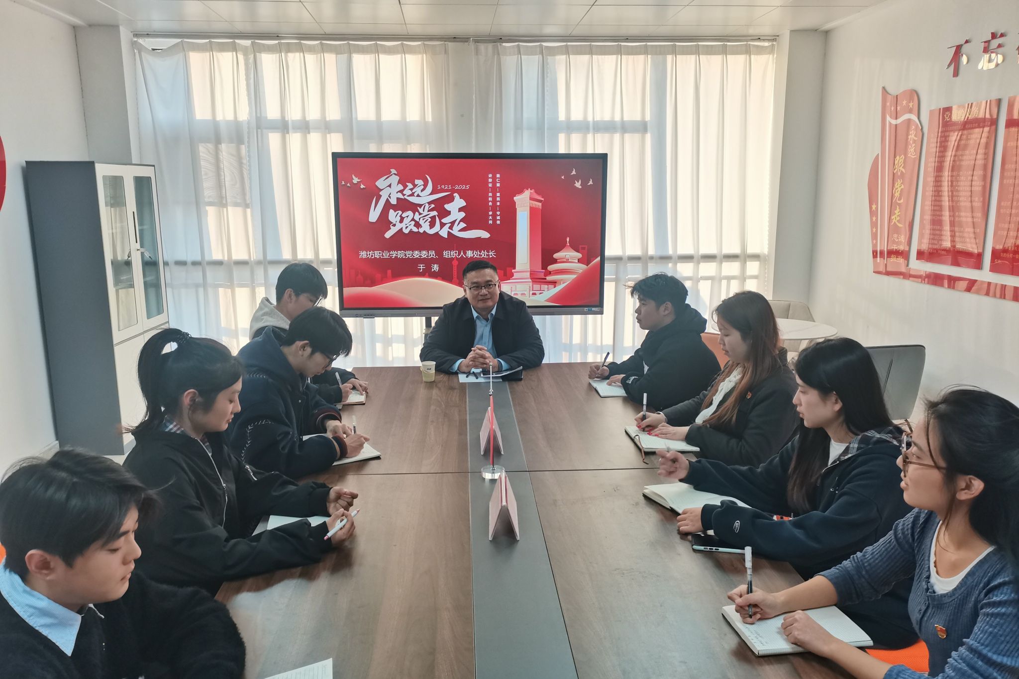 为引导青年学生党员厚植爱党爱国情怀,筑牢信仰之基,11月26日,学院党委委员、组织人事处处长于涛走进蕙兰社区,面向学生党员开展“永远跟党走”主题党课宣讲活动,为青年学子带来了一堂兼具思想深度与实践温度的精神盛宴。宣讲现场,于涛创新宣讲形式,以“一个思想,一位人,一首诗,一本书”为切入点开启党课导入,充分调动了学生党员的聆听兴趣和参与热情。随后,他结合自身工作经验与学习教育感悟,从伟大建党精神形成的基础和条件、...更多 -