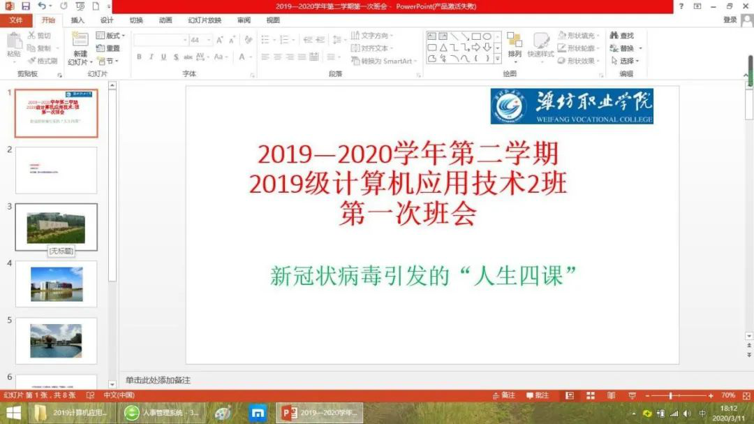 依然还处在抗疫的日子里,虽然许多行业企业已经复工,但学校这个特殊的阵地,仍然“坚壁清野”,师生们坚持居家学习生活,共同用心坚守住这个特殊时期的平安宁静。校园里的寂静画面,正是师生们响应号召、服从管理的写照。而在居家抗疫、网上学习的日子里,每个班级在辅导员(班主任)老师的组织引领下,依然是团结友爱、统一行动的团队。从每天学生的考勤打卡,到疫情统计报表,从居家远程学习,到学生心理辅导,还有利用假期参加辅导员网络培训提高工作能力等,每个辅导员(班主任)都在用心用爱付出,竭力尽职尽责。我们在此摘登部分辅导员(班主任)居家工作的片段,记录他们辛勤耕耘的感人画面。他们默默奉献的拳拳之心和爱岗敬业的点滴之功,必将汇聚成河,成为推动学院建设发展的不竭动力。