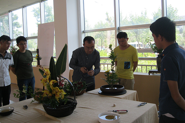 在“鸢都赏花——端午节气插花主题展”现场,我院2014年全国职业院校技能大赛艺术插花项目获奖同学,在专业技能教师指导下现场展示插花技艺。该次艺术插花与我国传统端午文化巧妙结合,增添了插花的文化元素。现场展示的“采菊东篱下”、“鸿运当头”、“盛世花开”、“富贵吉祥”等插花艺术作品都展现了很高的艺术水准。同学们娴熟的插花技艺,独特插花造型,赢得了参观师生的高度评价。