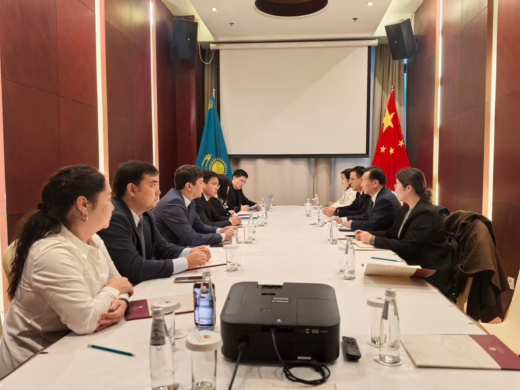 在哈萨克斯坦期间,代表团先后访问了贾母布尔高等理工学院、阿斯塔纳高等理工学院、中国电力建设集团哈萨克斯坦代表处、哈萨克斯坦中国总商会等多所高校、企业及机构。在贾母布尔高等理工学院,校长阿斯哈特、贾姆布尔州教育局科教部主任阿伊巴尔先生等热情接待代表团,双方正式建立友好合作关系并举行签约仪式,计划近期启动化学工程领域师生交流和技术培训项目。在阿斯塔纳高等理工学院,代表团与副校长阿瑟玛等举行会谈并签署合作意向书。在中国电力建设集团,双方围绕“中文+职业技能”培训需求开展深入交流,就共同培养具备中文沟通能力和专业技能的本土人才达成合作共识。在哈萨克斯坦中国总商会,代表团了解在哈中资企业对各领域技术技能人才的需求情况,为后续推进学生海外实习与本地员工培训找准方向。