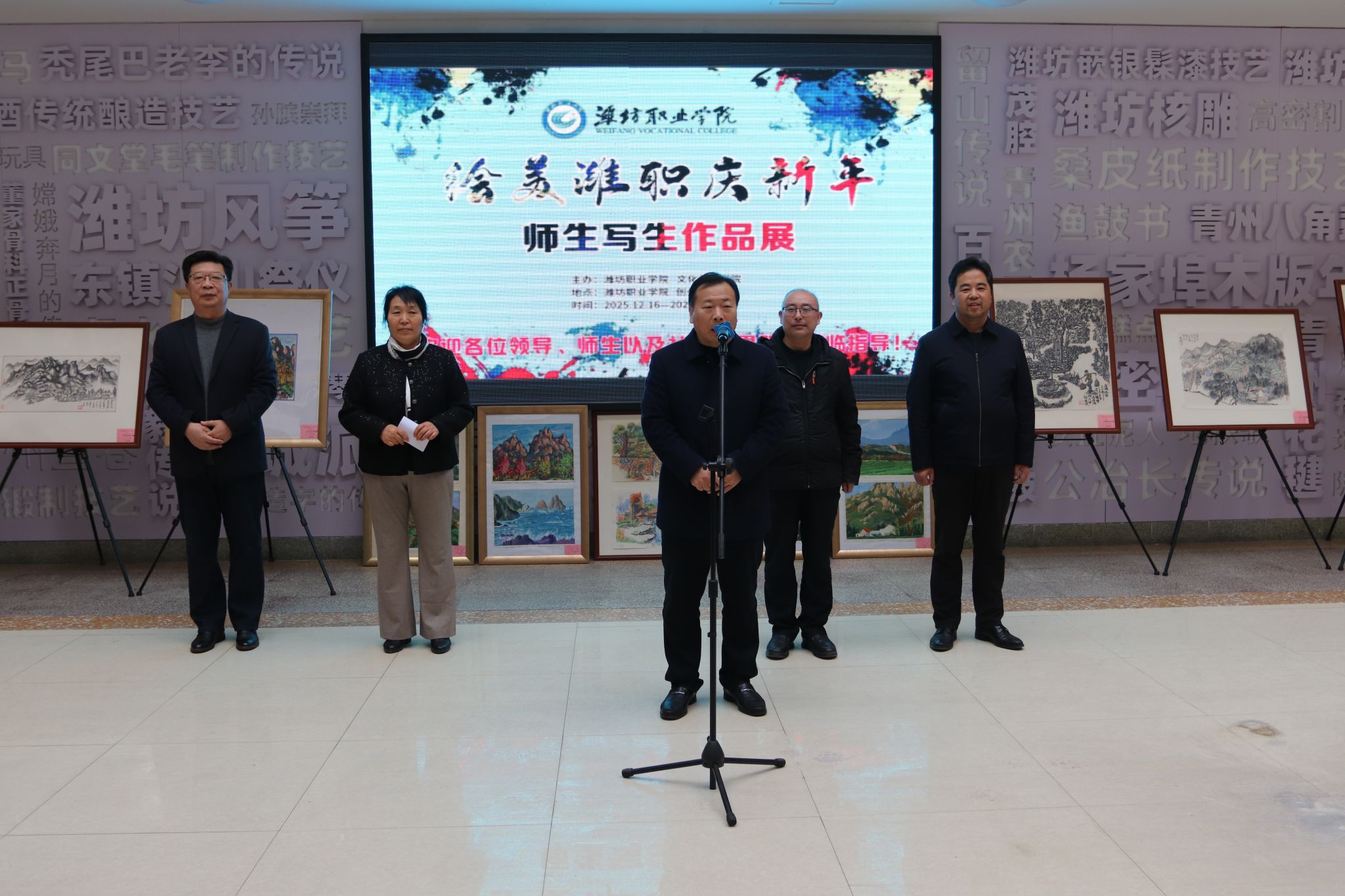 12月16日下午,文化创意学院“绘美潍职庆新年”师生写生作品展在奎文校区开展。学院党委副书记贺志强,党委委员、宣传部部长鞠桂芹,教务处处长、文化创意学院党政负责同志及200余名师生代表参加活动。