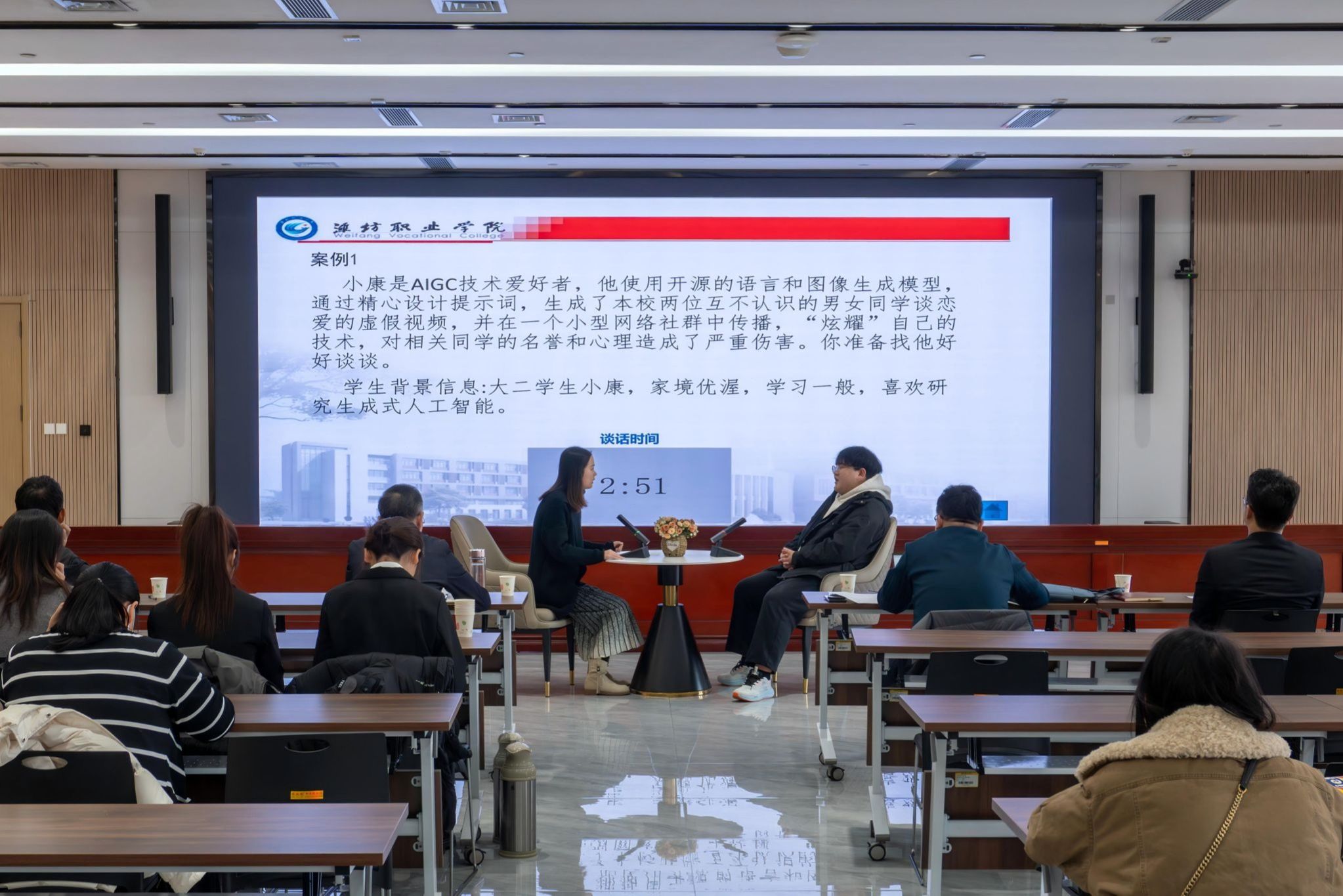 经过各二级学院初赛的严格选拔与层层筛选,最终14名辅导员脱颖而出,晋级案例研讨环节决赛;13名辅导员凭借扎实的功底,跻身谈心谈话环节决赛。在案例研讨环节,比赛聚焦学生工作中的重点、难点与痛点。选手围绕学生权益纠纷、学业与价值观引导、校园矛盾调解等真实场景,展开深度剖析与智慧交锋。参赛选手快速反应、精准研判,将政策理论与工作实际紧密结合,条理清晰地提出务实解决方案,充分展现了分析问题、化解矛盾、应急处突的专业素养与实践智慧。谈心谈话环节比赛中,面对模拟出的心理压力、学业困难、人际矛盾等真实情境,选手们以真诚倾听建立信任,以敏锐观察定位症结,运用专业沟通技巧耐心疏导、循循善诱,既化解思想困惑,也提供切实可行的成长建议,生动诠释了“严爱相济、润己泽人”的育人理念与立德树人的责任担当。