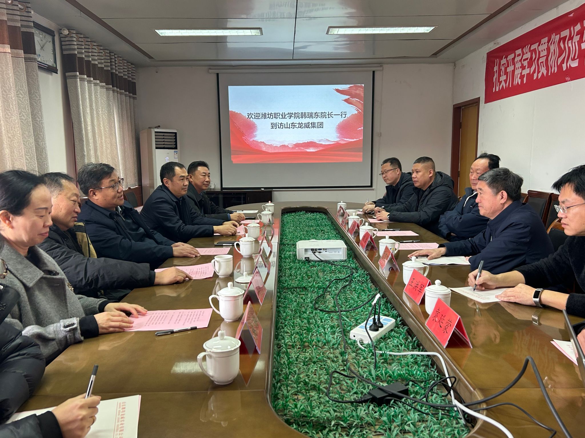 在山东潍坊龙威实业有限公司,校企双方举行座谈交流。公司董事长袁萌龙对学院一行表示欢迎,详细介绍了企业发展现状与人才需求,并期望通过“订单式”“定制式”培养模式及实习实训基地建设,进一步深化校企合作。韩瑞东对企业近年来的高质量发展和对潍坊社会经济的贡献表示了赞赏,并介绍了学院办学特色、校企合作及育人成效方面的情况。随后,调研团队参观了企业展厅、核心盐场、港口物流园区等,了解企业转型发展的历程。此外,团队还走访了龙威集团化工分公司和佰露食品分公司,实地考察企业生产环境、了解人才需求,并与公司管理人员探讨进一步合作空间。