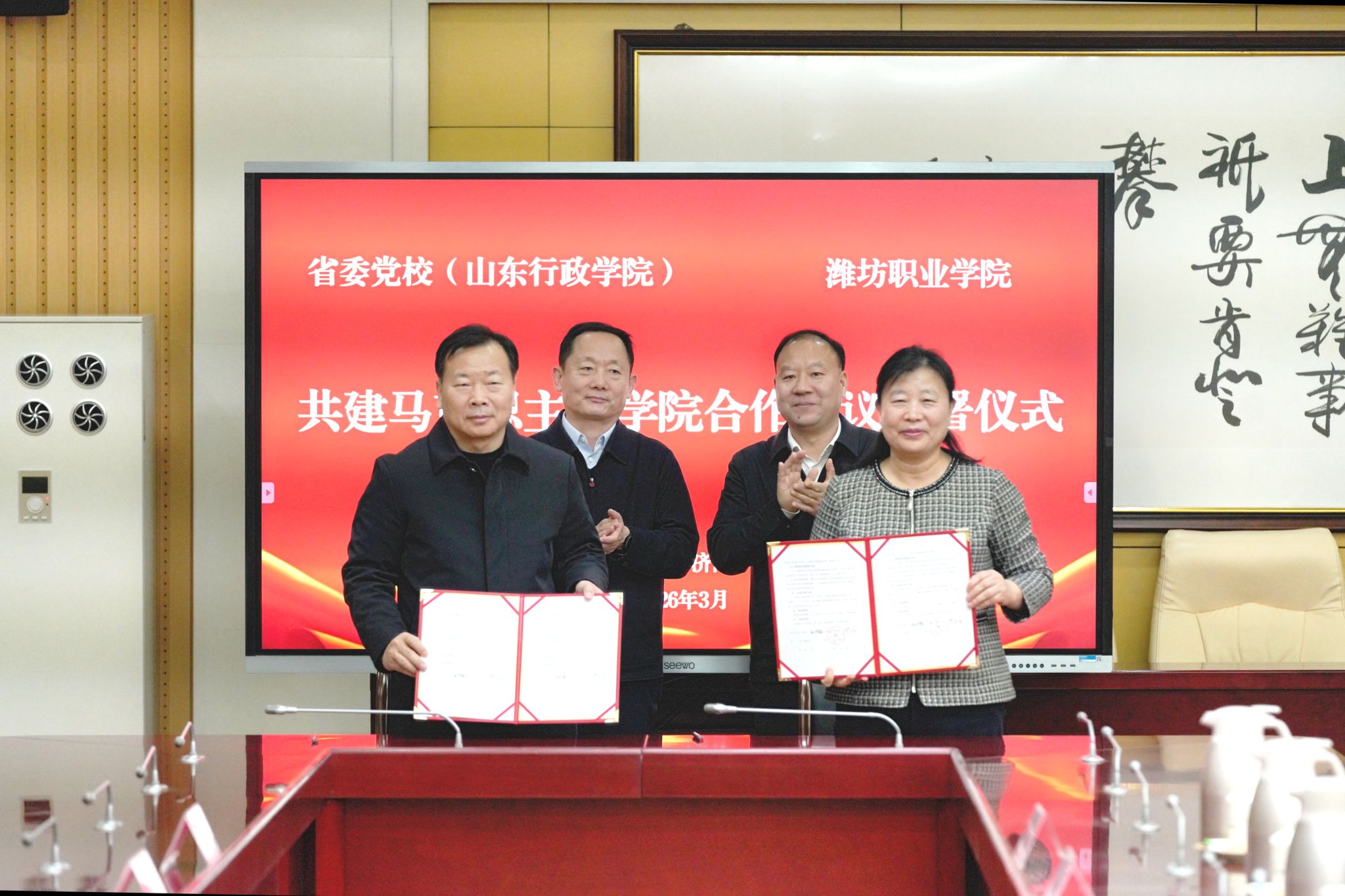 学院与中共山东省委党校(山东行政学院)签订共建马克思主义学院合作协议,是我院思政课建设史上的一件大事,将有力提升教师政策理论素养与教学科研能力,为我院思政教育师资队伍内涵式高质量发展注入强劲动力、奠定坚实基础。(邢庆亮供稿)