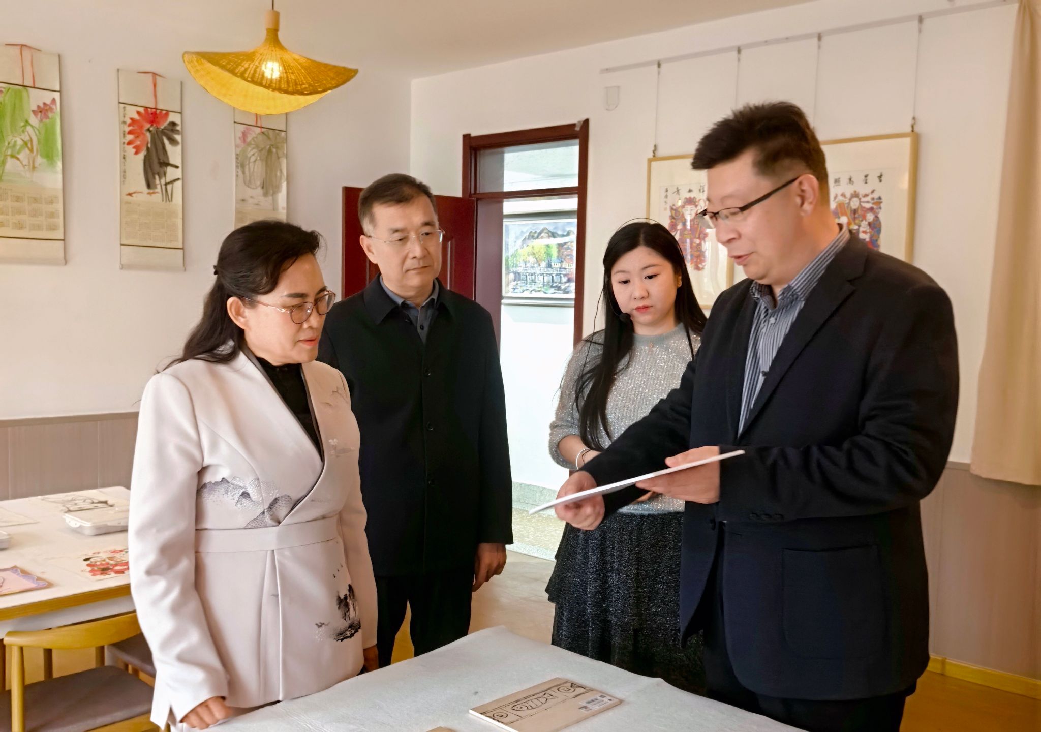 双方开展座谈交流,任培华对孙志春的到访表示欢迎,并全面介绍了学院办学历史、发展定位、办学特色与人才培养成效。孙志春对我院在人才培养、文化传承创新等方面取得的办学成果给予高度评价,并介绍了济宁职业技术学院的基本情况。双方就专业建设、文化育人、科研合作等重点工作深入交流、互学互鉴。孙志春还参观了潍坊非遗版本馆与“一站式”学生社区博雅社区,详细了解我院非遗文化传承、校园文化建设及学生社区育人工作开展情况。