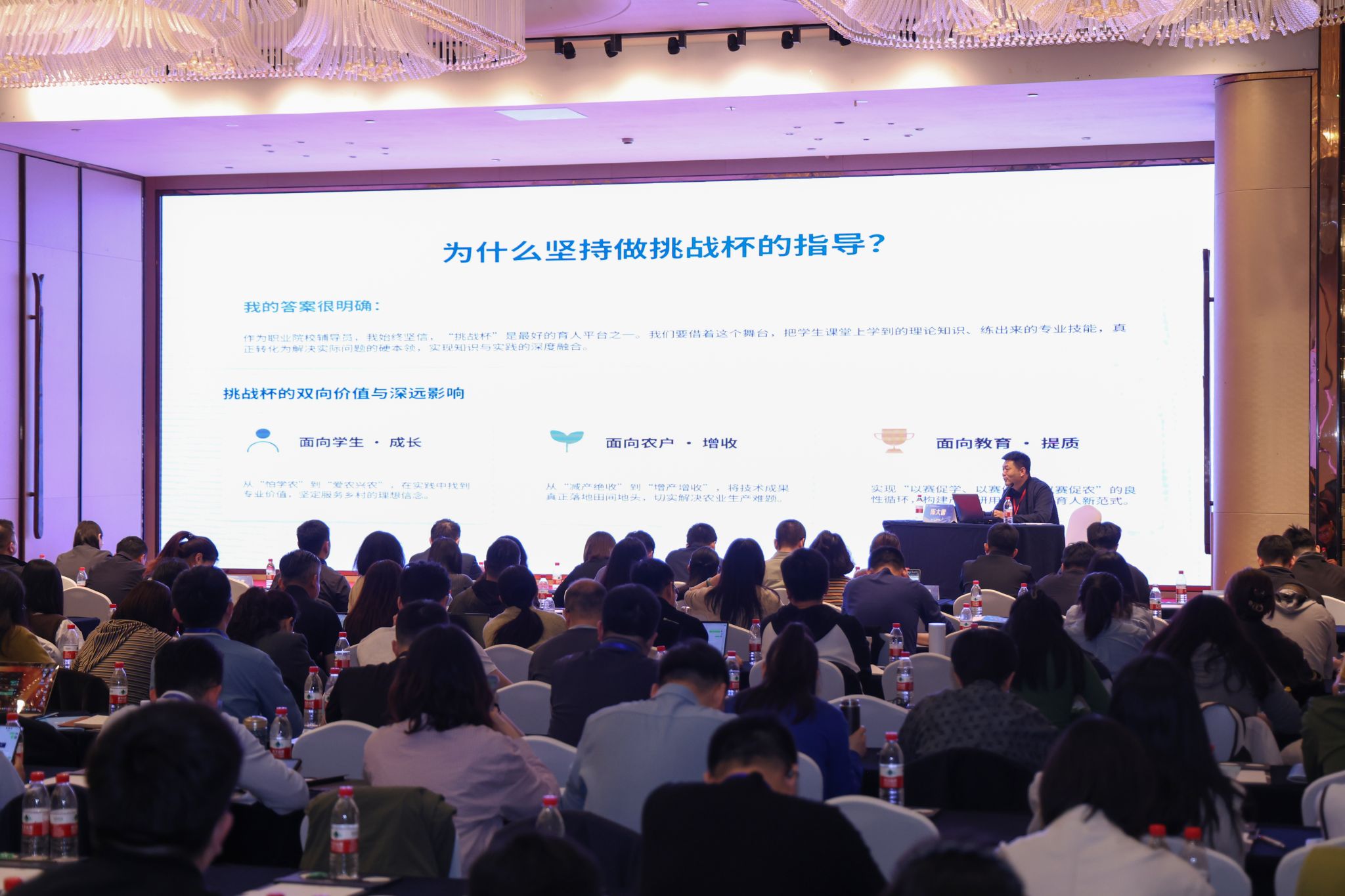 本次活动以“青春为中国式现代化挺膺担当”为主题,围绕竞赛组织工作、往届优秀作品经验做法等内容开展交流研讨。学院辅导员陈大雷以《以坚持为笔,以匠心育人》为题,结合学院连续斩获“挑战杯”全国金奖、全国特等奖的实战经验,系统分享了职业院校创新创业教育与竞赛备赛的特色路径。他从“坚守以赛育人初心,扎根乡土找真问题”切入,介绍了学院立足农林专业群优势、紧扣山东农业产业需求、锚定乡村振兴战略的“三贴合”选题原则,详细讲解了“萌芽期下沉一线、培育期精雕细琢、冲刺期全程陪伴、沉淀期复盘传承”的全周期四阶段备赛指导法,重点展示了《智农姜芯——高产能脱毒姜苗助力乡村振兴》等项目从田间调研走向国赛领奖台的完整历程,以及“专业教育+劳动实践+创新创业”三融合育人模式的建设成效。分享内容获得与会专家与各高校代表的高度认可。