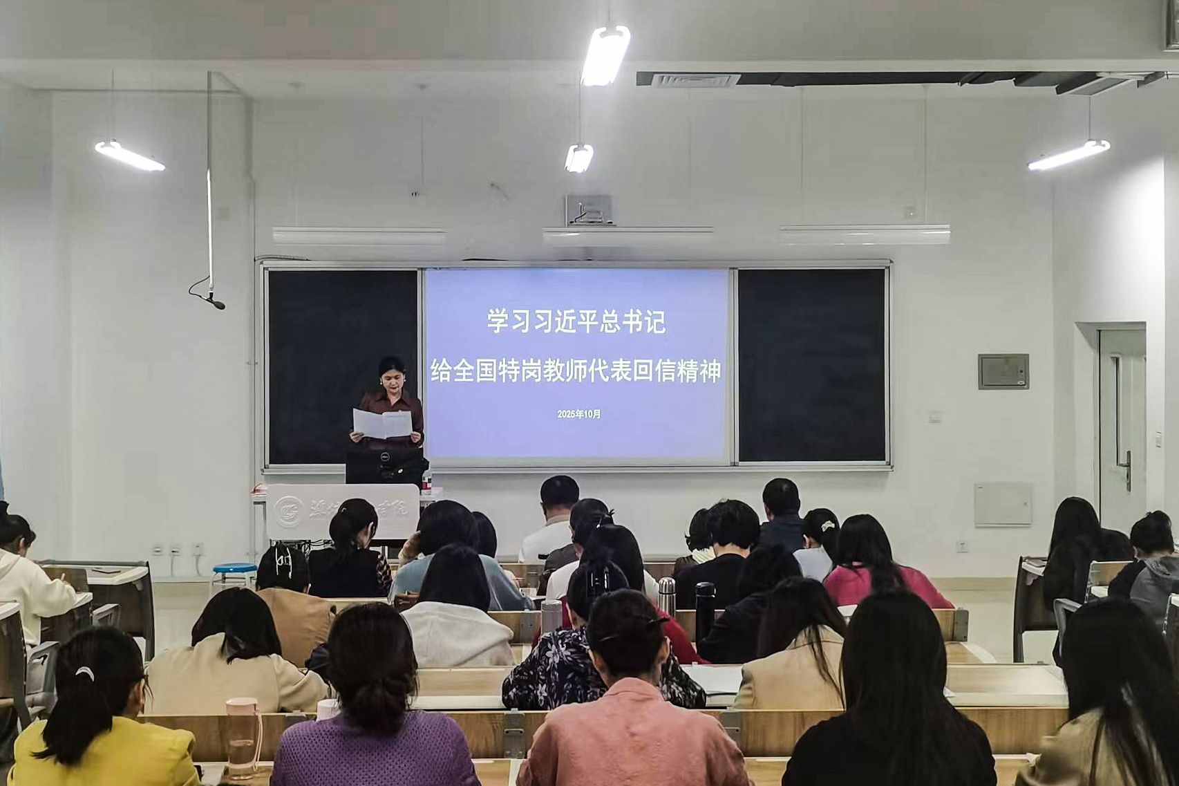 会上,国际商务学院党总支负责人首先带领大家学习了习近平总书记给全国特岗教师代表的回信原文,深刻解读特岗教师作出的突出贡献和习近平总书记重要指示精神。他鼓励大家要坚守教育初心,不断提高教书育人本领,为推进乡村振兴、建设教育强国作出新的贡献。随后,他分享了教育领域人物案例,讲述了于漪等教师重师德强师风的先进事迹,为全体教师树立了典型标杆。