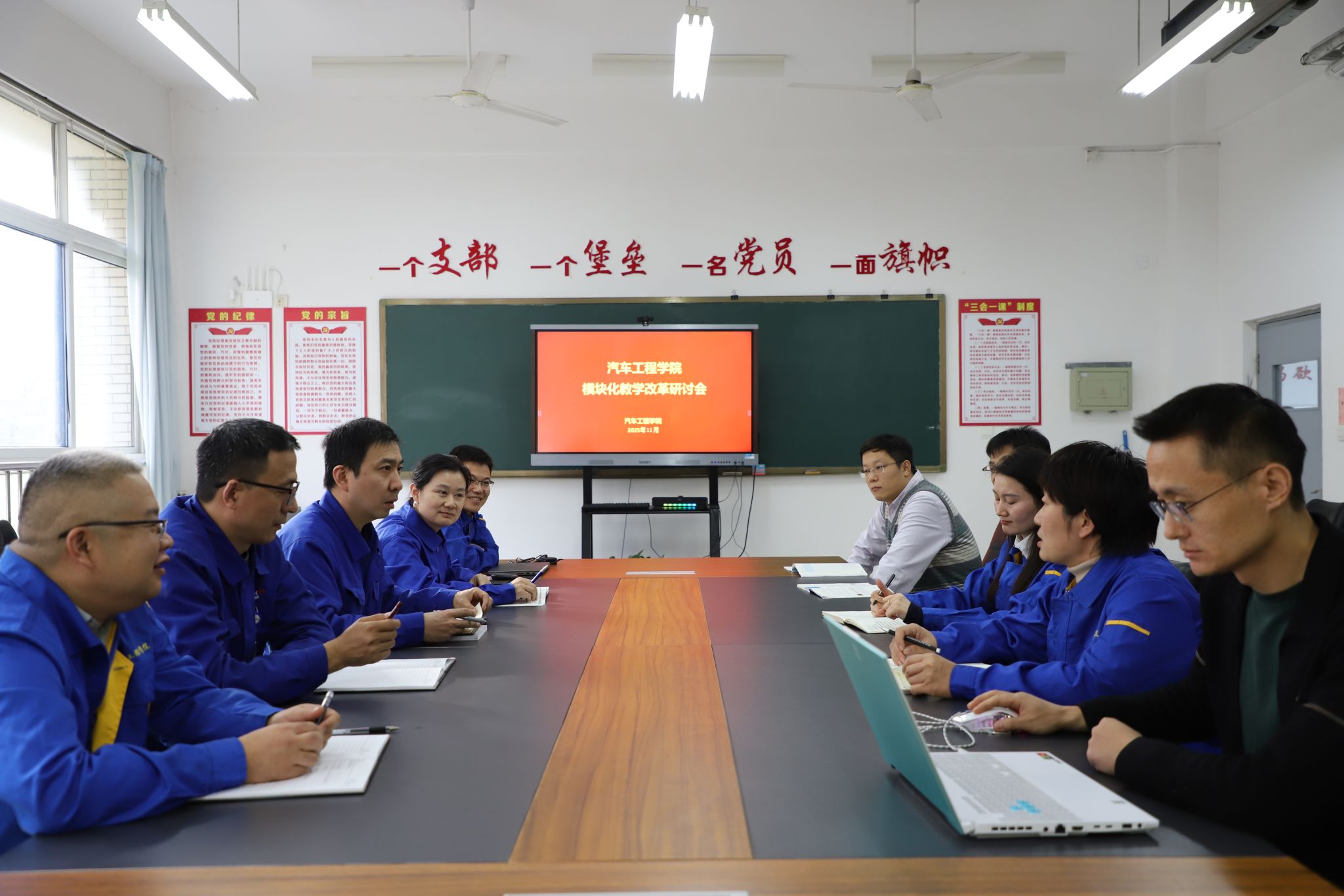 为深化模块化教学改革,持续完善人才培养体系,全面提升人才培养质量,11月6日下午,汽车工程学院在惠泽2号楼B208召开模块化教学改革研讨会。会议邀请省职业教育“技能大师”工作室负责人李永刚及高级技师王建光与会指导工作,汽车工程学院相关负责人、各专业负责人、骨干教师、技能大师工作室成员代表共同参会研讨。