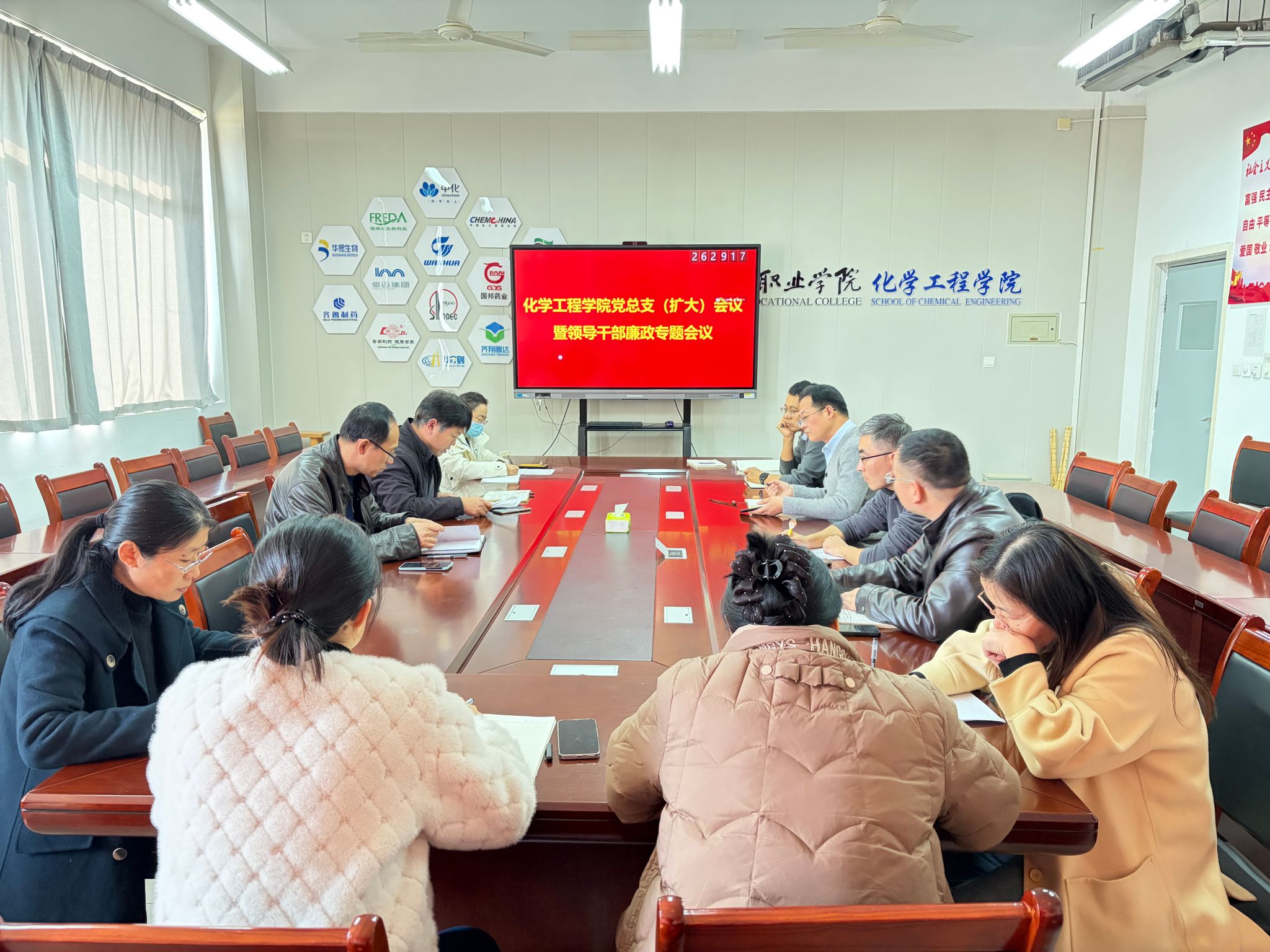 11月10日下午,化学工程学院在滨海校区惠泽1号楼A304召开党总支(扩大)会议暨领导干部廉政专题会议,我院党总支委员、专职组织员及各科室负责人参会。