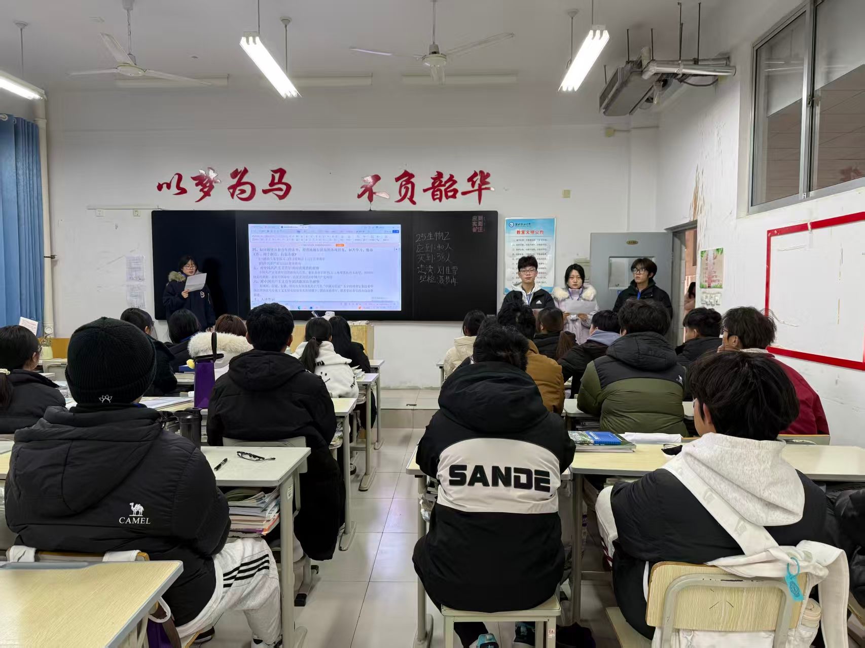 本次活动以班级为单位有序开展,围绕出勤情况、朗读状态、纪律表现及集体风貌等维度制定了量化评分标准。为确保评比公平公正,学习部组建专项检查小组,每日轮流巡查各班级晨读情况并细致记录评分。清晨的校园里,琅琅书声穿透冬日晨曦,各班学子精神饱满、齐声诵读,展现出昂扬的学习热情与严谨的集体风貌,成为冬日校园中最富活力的风景线。经过为期五天的综合考评,共有九个班级凭借突出表现脱颖而出,获表彰奖励。