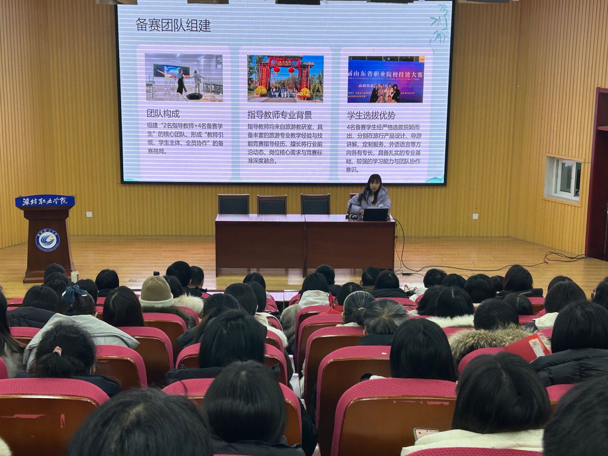 会上,我院负责人通报了2025年省职业院校技能大赛的整体情况。过去一年,我院持续深化“以赛促教、以赛促学、以赛促改”机制,旅游团队与商务英语团队历经近一年的深耕细作,圆满完成参赛任务,双双斩获大赛银奖,彰显了学院专业建设与人才培养方面的显著成效。在经验交流环节,获奖师生团队代表进行了深入分享。旅游赛道团队重点介绍了“阶段化、精准化”的备赛模式,分享了深入黄河沿线村庄开展实地考察、将黄河文化与乡村振兴战略融入项目设计的实战经验;商务英语团队则分享了如何紧扣“AI+”、“文化出海”等行业新趋势,通过多维打磨与全时段模拟训练,强化团队默契与临场应变能力的具体做法。
