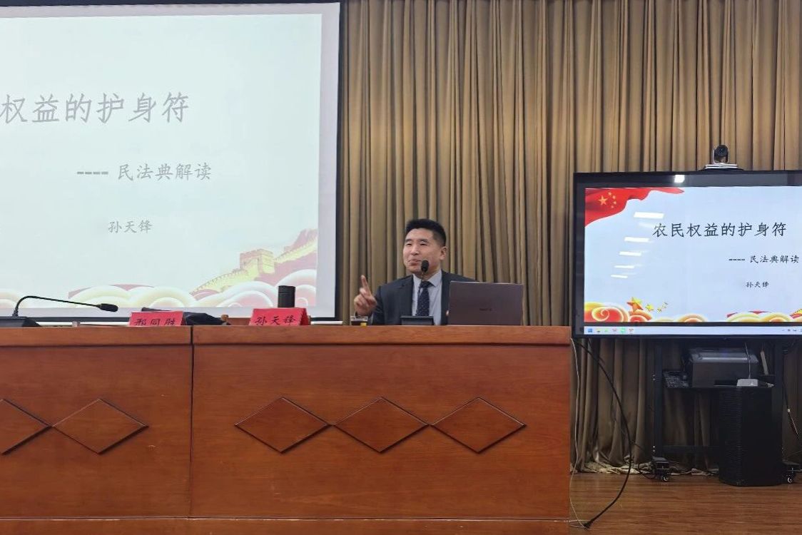 孙天锋以“农民权益的护身符”为题,立足民法典涉农条款,运用以案释法的方式展开普法宣讲。他结合农药经营、合同纠纷、产品质量等典型案例,深入剖析了产品责任、合同履行、定金罚则、债权人撤销权等与农业生产生活密切相关的法律问题,通过生动案例,将抽象的法律条文转化为鲜活易懂的实践指南,引导参训人员学会运用法律武器维护自身合法权益,让“纸面上的法律”成为“行动中的指南”。
